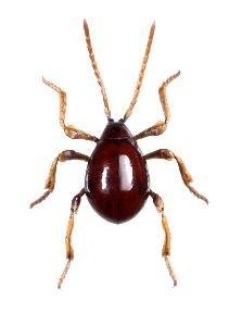 拟裸蛛甲,体长 2 ~ 3mm。棕红色,有强光泽,背面强烈隆起呈卵圆形。头小而下垂;额区有 1 条纵凹纹;在复眼的上方、下方和后方有多条近平行的脊纹,伸达前胸背板前缘;两触角窝的后缘线在中央会合成直角。前胸背板小,光滑少毛无刻点。鞘翅无毛无刻点,左右鞘翅愈合,并向两侧扩展包围腹部,翅宽约为腹部腹板宽的 3 倍。腹部可见腹板 4 节。